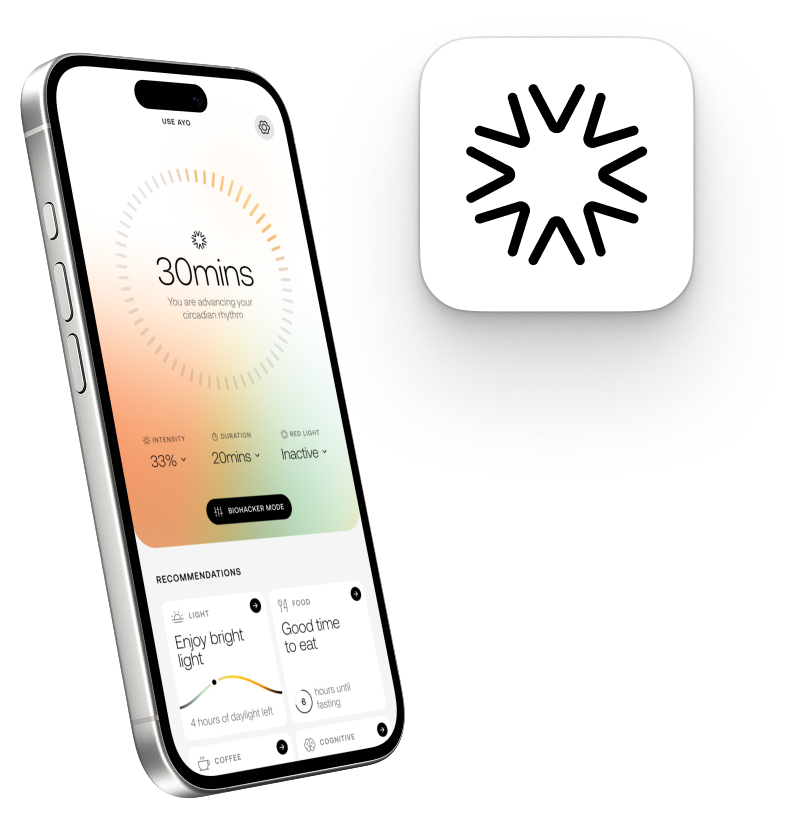 AYO turns insight into action. With guided light sessions based on proven science, AYO makes it easy to improve your sleep, boost your energy, and feel better—day by day.